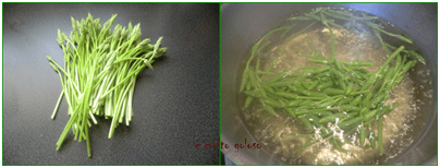 Les faire cuire 2 à 3 minutes dans de l’eau bouillante salée. Elles vont bien dans les salades composées, en petites garnitures et bien sur en décors divers. Leur goût et le même que l’asperge verte en un peu plus amer.