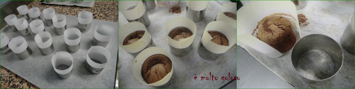 - – Chemiser 10 cercles de 7 cm de Ø et de 4 cm de hauteur avec des bandes de papier cuisson beurré. Réserver au frais.