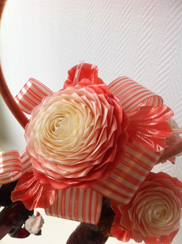 Tirer : opération qui consiste à étirer du sucre cuit (ou isomalt) et à le replier sur lui même plusieurs fois pour le satiner (roses, fleurs, ruban sont en sucre tiré).