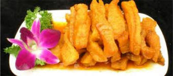 Filets de poisson détaillés en lanières de 5 cm de long, marinés vin de riz, sel. Égoutter, éponger et frire dans l’huile sur feu vif pendant 1 minute. Égoutter une fois dorés.Dans peu d’huile, ajouter gingembre haché, ail et ciboule hachés, cuire sur feu doux. Mouiller eau (peu) et sauce soja, sucre et 5 épices. Ajouter les filets de poisson Finir de cuire à feu vif (réduction du liquide). Refroidir et arroser d’huile de sésame.