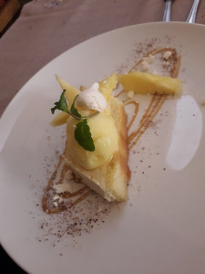 Entremet comme un tiramisu rhum/exotique, sorbet ananas