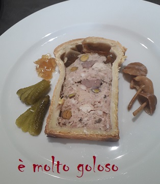 - ♦ Réaliser la pâte à pâté : 500 grammes de farine T55, 14 grammes de sel fin, ajouter et sabler 160 grammes de beurre doux. Finir avec 150 grammes d’eau froide, 20 grammes d’huile d’olive et 2 jaunes d’œufs. Fraiser 2 fois, bouler et réserver au frais 24 heures minimum.