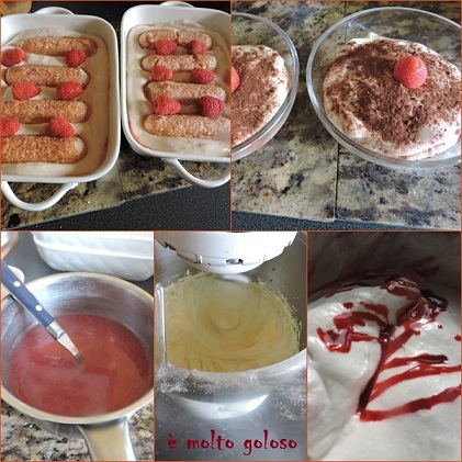 - ♦ Ajouter quelques framboises fraîches. Garnir à moitié de tiramisù.