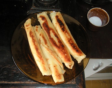 Petites crêpes salées, masquées d’un mélange de fromage blanc, d’œufs battus et de beurre. Elles sont pliées et roulées puis frites à l’huile et servies en hors-d’œuvre chauds.