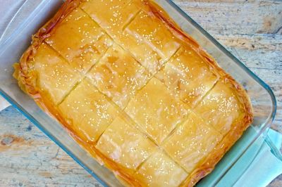 Tiropita ou tyropita est une pâtisserie grecque réalisée avec des couches de pâte à filo beurré et garnie d’un appareil de fromage et œufs. Le tiropita est servi soit individuellement, soit sous la forme d’une tarte qui est portionnée.