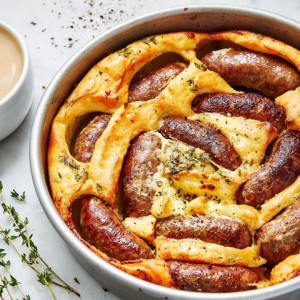 Le toad in the hole est un apprêt populaire de la cuisine britannique dont le nom signifie «crapaud dans le trou». Il est généralement composé de petites saucisses de porc fraîches, sautées puis recouvertes de pâte à crêpe épaisse (qui ressemble à celle du Yorkshire pudding). La préparation est cuite à four chaud et servie très chaude.