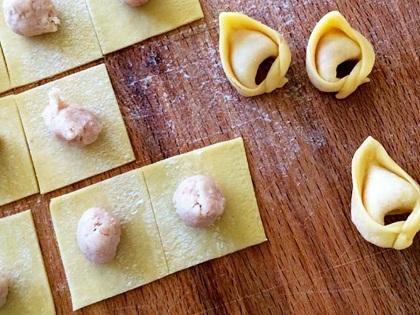 La farce est le plus souvent à base de poulet ou de jambon. A Bologne les tortellini font partie du dîner de Noël (farce à la dinde, au jambon et au saucisson).