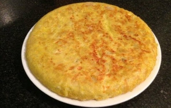 Omelette plate espagnole, toujours garnie de pommes de terre. Elle est cuite sur les deux côtés et est découpée en quartiers.