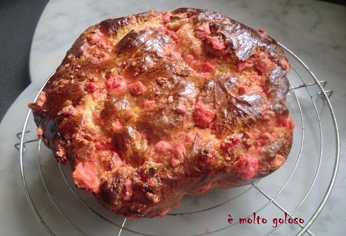 ◊ Quand la pâte se détache de la cuve, ajouter 120 grammes de beurre doux ramolli. Pétrir et ajouter les pralines concassées.