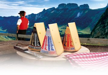 ◊ Gruyère AOC d’Alpage : fromage saisonnier (d’avril-mai à octobre). Produit sur les pâturages d’alpage de la Gruyère, du Jura et régions limitrophes de Suisse romande. Maturation de 10 à 16 mois (goût aromatique, bouquets des hauts pâturages).