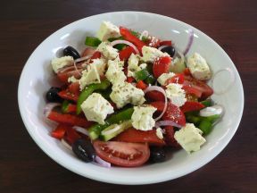 La Feta est avec la tomate, le concombre, l’oignon et l’huile d’olive un des ingrédients de la salade grecque Horiatiki.