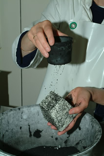 * Neuf semaines plus tard, les fromages ne pèsent plus que 8 kg environ. Ils sont alors carottés (prélèvement d’un morceau à l’intérieur).