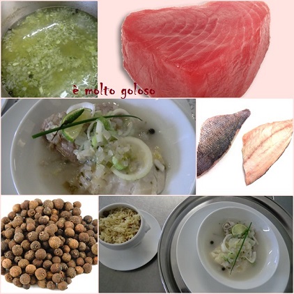 - ♦ Cuire les poissons : cuissons séparées thon et daurade. Verser le court-bouillon froid sur les filets de poissons. Porter à frémissements. Attention aux cuissons (rapides).