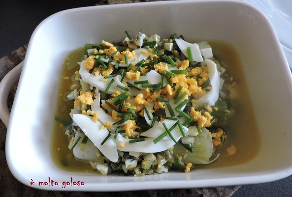 - ◊ Hacher grossièrement 2 œufs durs (blancs et jaunes séparément).