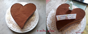 - ◊ Monter en cercles en forme de cœur : biscuit, fondant, biscuit et fondant. Lisser et réserver 2 heure au froid.