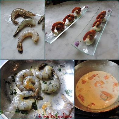 - ◊ Faire mariner les gambas : huile d’olive, curcuma et coriandre fraîche ciselée. Réserver 2 heures au frais.