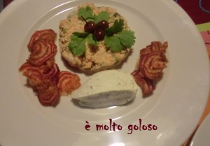 - ♦ Dresser sur assiettes froides : le tartare à l’aide d’un cercle, quenelle de crème assaisonnée, chips de betterave. Finir avec 3 cerises au vinaigre et pluches de cerfeuil sur le tartare de saumon d’Ecosse.