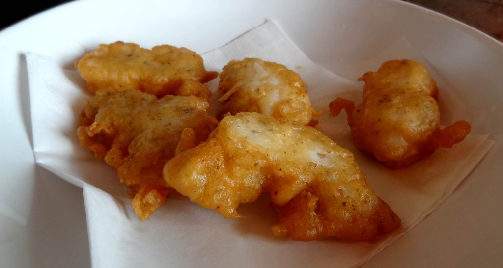 - ◊ Poisson filetés à cru ou entiers et trempés dans une pâte à frire ou panés à l’anglaise. Frits, égouttés et accompagnés d’une sauce tomate.