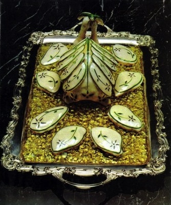 - ◊ Poularde farcie pochée, nappée de sauce blanche chaud-froid et lustrée à la gelée. Accompagner d’une salade russe.