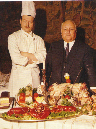 La carte et l’ensemble justifie les 2 étoiles obtenues en 1948 :pâté de brochet mousseline au cresson, cassolette de queues d’écrevisses, brioche au foie gras, terrine de ris de veau clouté aux truffes, escargots à la mode d’Auxerre, timbale de homard gourmande, civet de poulet de Bresse au vieux Bourgogne, jambon à la chablisienne, bécasse flambée à la riche et le fameux Dolce Borghèse et sa crème au kirsch.