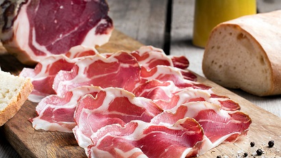 Le Spalla est une spécialité italienne réalisée comme la coppa mais avec de l’épaule de porc qui est désossée, parée, salée puis enveloppé et ficelée en boyau, poivrée et peu séchée.