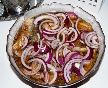 Le stegt sild i lage se consomme froid avec des câpres et des oignons.