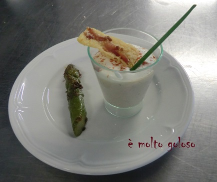 - • Réchauffer les pointes d’asperges au beurre mousseux, saupoudrer du parmesan râpé et rouler les asperges.