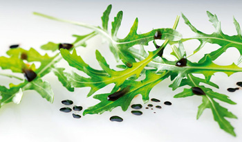 - • Assaisonner 60 grammes de roquette avec une vinaigrette aux jus de Saint-Jacques.