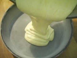 Mouler : verser un appareil dans un moule pour lui donner une forme désirée. Mouler de la génoise, des biscuits…
