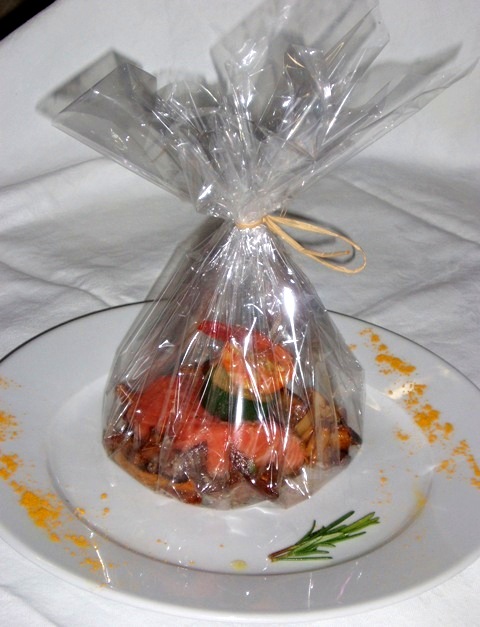 En papillote : préparation qui consiste (parfois après une première cuisson) à enfermer hermétiquement les éléments traités, dans une feuille de papier sulfurisé. Mis ensuite au four chaud, le papier, sous l’action de la chaleur se gonfle. Il existe un papier transparent ayant les mêmes propriétés. Éviter l’utilisation du papier aluminium.