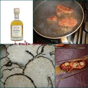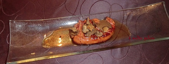 - ◊ Dresser sur assiettes chaudes : escalopes de foie gras et « carpaccio » de truffes d’été, cordon de balsamique blanc réduit.