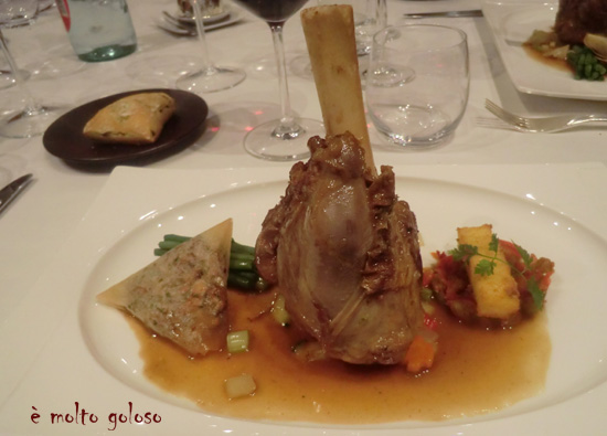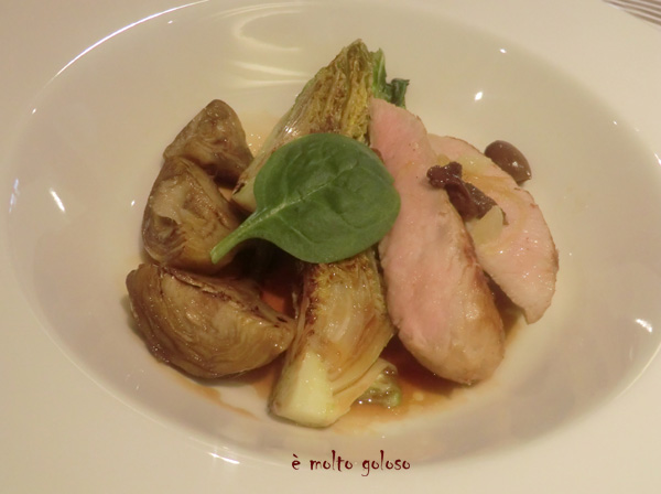 Veau de lait rôti, olives tagiasca et citron confit, jus tranché à l’huile d’olive vierge extra au fruité noir
