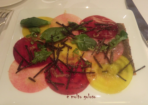 Tartelette craquante de légumes marinés et purée de truffe à l’huile d’olive vierge extra au fruité vert intense