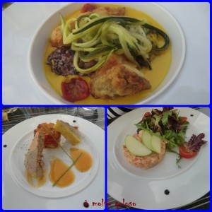 - – Médaillons de lotte safranés, légumes croquants et risotto noir