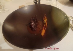 Joues de veau « à la cuillère », carotte rôtie et jus de carotte et tagliatelle de carotte