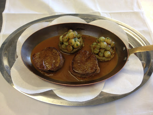 - ◊ Pièces déglacées de fond à l’estragon et présentées avec des feuilles d’estragon blanchi. Pommes de terre château ou fondantes, champignons farcis et laitues braisées, purée de pois.