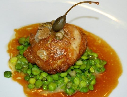 - ◊ Tartelettes ou fonds d’artichauts garnis de petits pois au beurre. Pommes châteaux pour grosses pièces.
