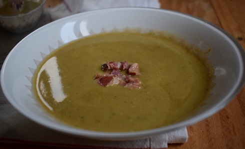 Le potage Conti : la purée est allongée de bouillon et lié au beurre. Servir avec petits croûtons.