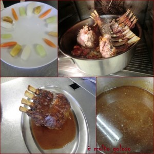 Baron d’agneau Dartois : croustades de pommes de terre garnies de petits pois et sauce madère.