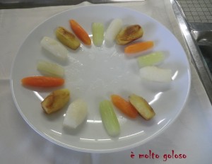 - ◊ Carottes et navets tournés et glacés, céleri braisé et pommes rissolées.