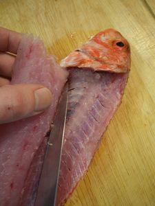 Fileter : Lever les filets d’un poisson à l’aide d’un couteau à lame flexible (couteau filet de sole).