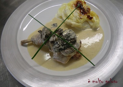 - ¤ Déglacer l’ustensile de cuisson avec 80 grammes de Porto et 120 grammes de vin blanc sec. Réduire. Mouiller avec 1,250 litre de fond brun lié de volaille. Cuire, vérifier et chinoiser. Réserver au chaud.