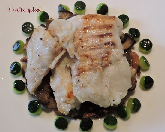 - ♦ Dresser sur grandes assiettes chaudes : pleurotes en cercle, poser un pavé de cabillaud. Entourer de billes de courgette.