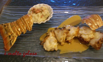 - ¤ « Rôtir » lentement au beurre demi sel les 4 queues de langouste en les arrosant régulièrement.