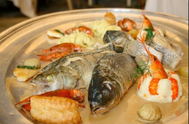 - ◊ Carpe : farcie d’une mousse de poisson, cuite au four avec fumet et vin blanc. Plat à gratin avec échalote ciselée, champignons émincés, jus de citron et chapelure. Sauce avec le fond de cuisson réduit et monté au beurre. Écrevisses et fleurons.