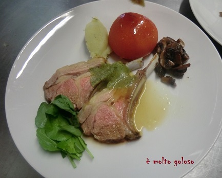 - ♦ Dresser sur assiettes chaudes : 2 côtes, 1 tomate étuvée, écrasée de pommes de terre, champignons sautés. Finir avec le jus corsé et cresson salé.