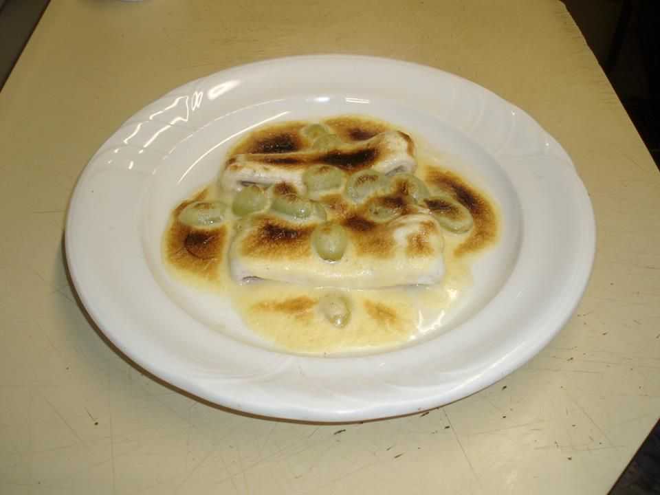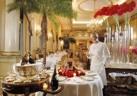Plats : Truffe en croque au sel onctueuse quenelle de foie gras, blanc de turbot à l’émulsion de pommes ratte truffée, ris de veau en brochette de bois de citronnelle rissolée jus aux herbes, caneton sauvage à l’orange écorces de navet, glacé de caramel fumé pistils de chocolat.