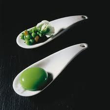En cuisine Jean-Georges innove : jus de menthe à la crème de petits pois, cappuccino de pomme de terre et truffes, foie gras cru mariné avec langoustines, artichaut et truffes, oeuf parfait, carré de porcelet cuit au foin dans un baeckeoffe, rouget « Gaudi » avec sa bohémienne de légumes provençaux et sardines émincées en escabèche…..