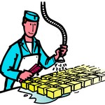 Le liquide est ensuite séparé du caillé, ce-dernier, chauffé à 40°, est remué. Lorsque le fromager estime que cette étape est finie, il place les fromages sur un plateau refroidissant.