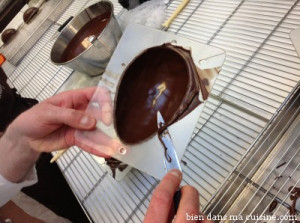 - ♦ Enlever avec un couteau, les coulures ou filaments de chocolat qui peuvent subsister après le moulage d’une pièce.